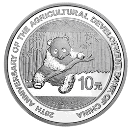中国农业发展银行成立20周年熊猫加字银质纪念币图案