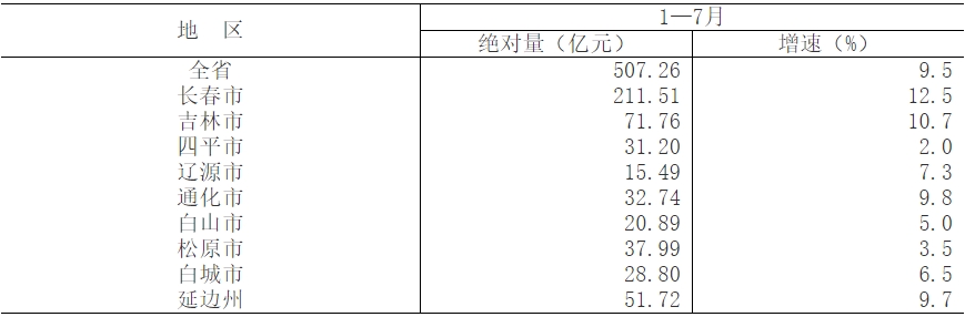 2023年1—7月地区原保险保费收入