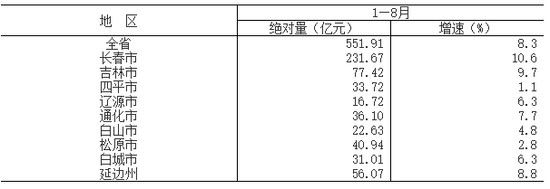 2023年1—8月地区原保险保费收入