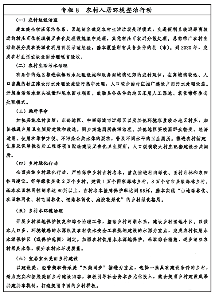 以建设美丽宜居村庄为导向,以农村垃圾、污水治理和村容村貌提升为主攻方向,开展农村人居环境整治行动,全面提升农村人居环境质量。