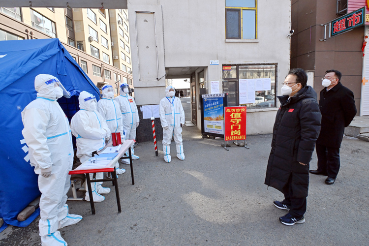 3月23日,省委书记景俊海到四平伊通县检查指导疫情防控工作,在瑞霖首府小区与下沉干部深入交流。邹乃硕 摄