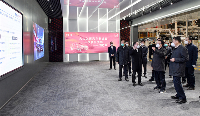 4月14日,省委书记景俊海到长春市实地检查指导疫情防控、复工复产等工作,在中国一汽红旗蔚山工厂详细了解企业防疫措施落实和生产经营情况。邹乃硕 摄
