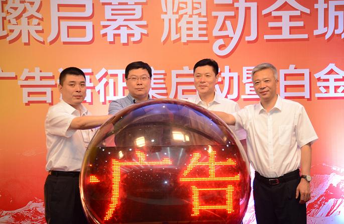在会场全体人员共同倒数声中,行长助理杨盛忠、信用卡中心总经理马强、吉林银行分行代表栾凤祥、吉林颂禾农民服务有限公司董事长姜军共同触摸启动球,宣布吉林银行长白山信用卡广告语征集活动正式开始、长白山白金信用卡正式面市。
