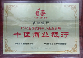 吉林银行荣膺“2016全国支持中小企业发展十佳商业银行”
