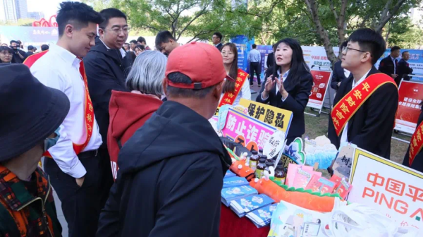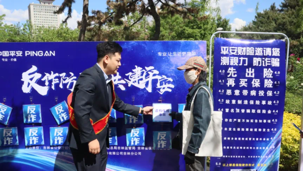 中国平安产险吉林分公司在党委书记、总经理曹旭,副总经理侯立胜的带领下,积极开展宣传活动,在园区内设立宣传展台、海报、横幅、易拉宝,通过设置游戏互动、发放原创消保周边纪念品、宣传折页,向广大群众普及常见保险欺诈形式、消费者权益、信息安全等金融常识,与园区游客开展面对面、零距离精准宣传。