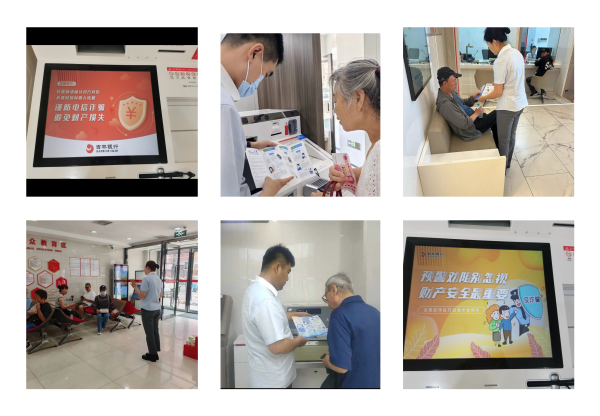 发挥网点优势,开展阵地宣传。吉林分行在营业网点悬挂防骗标语,在宣传栏摆放宣传折页,利用厅堂电视播放防诈骗案例,在ATM/ITM等自助设备滚动播放防诈骗提示,通过多种方式向客户传递防范电信诈骗金融知识。同时还以厅堂微沙龙宣讲方式讲解防范电信网络诈骗内容,并结合网点业务特点,在客户办理开立结算账户、开通手机银行及对公网银等业务时,由柜面及厅堂人员做好风险提示义务,积极营造浓厚宣传氛围。