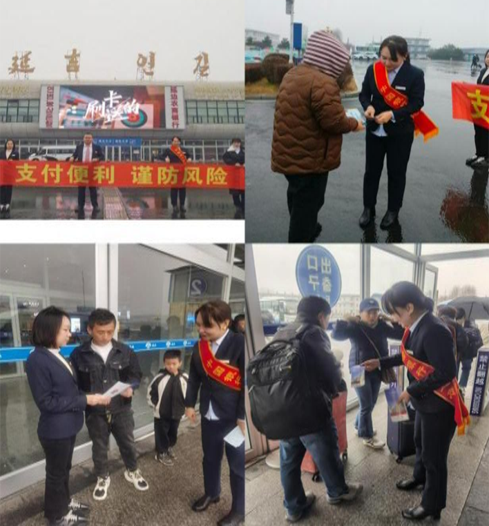 机场是境外来宾入境第一站。通化分行“青年服务队”走进柳河县三源浦机场为境外游客提供专业服务,并向机场工作人员及游客普及常见非法金融活动和非法金融广告的表现形式;延吉梨花路支行赴延吉机场,开展“支付便利,谨防风险”专项教育宣传活动,通过现场发放折页、宣讲等方式,向机场工作人员及游客普及支付便利、跨境金融等金融知识。加强“以案说险”,通过展示诈骗堵截或诈骗损失的案例,还原诈骗手法,并开展穿透式反假货币宣传。