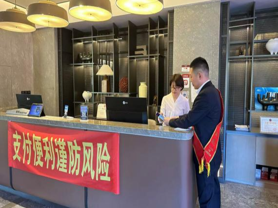 长白山支行组织员工走进“长白山璞悦温泉度假五星级酒店”,通过现场发放折页、宣讲等方式,向酒店工作人员及住店的客户普及支付便利、跨境金融等金融知识。