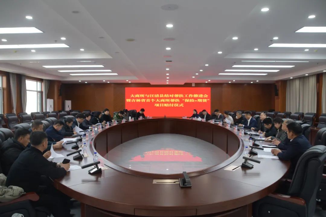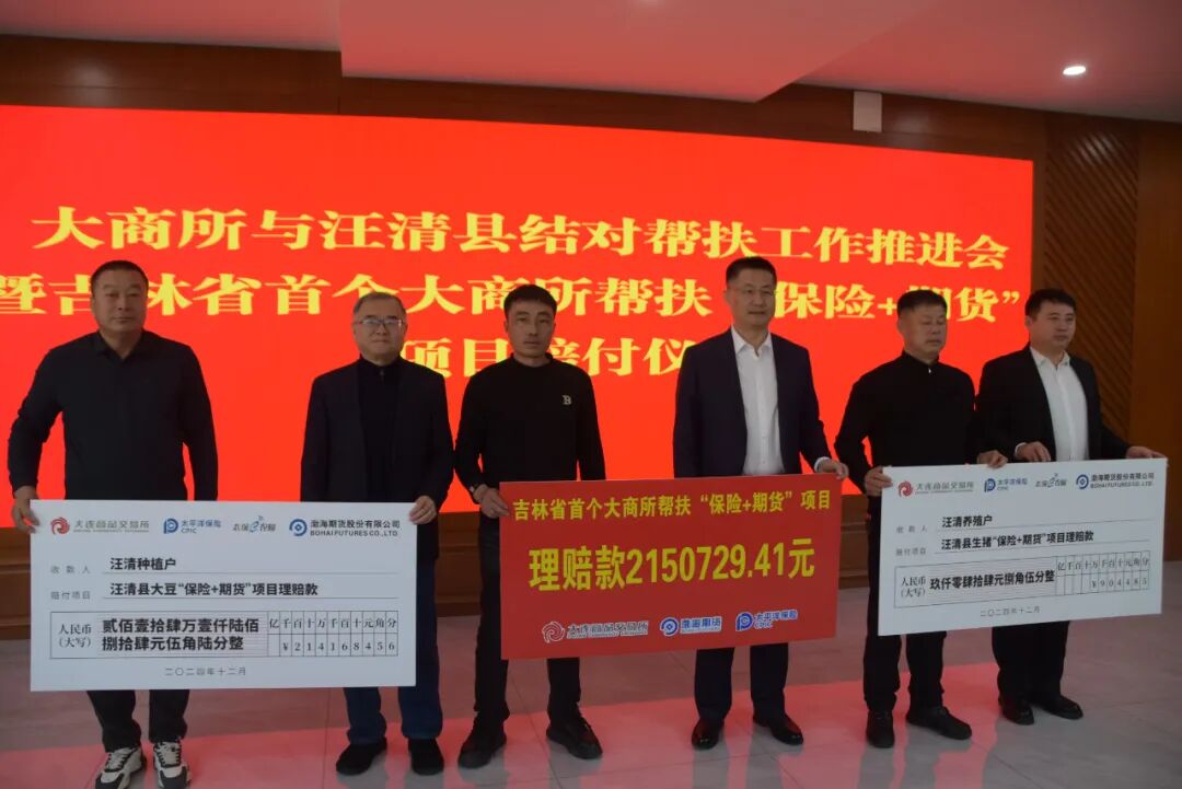 会上,吉林证监局相关负责同志在发言中指出,期货市场是我国金融体系的重要组成部分,与实体经济息息相关。“保险+期货”扎根农业实体,保障农户利益,是金融行业服务我省乡村产业发展的重要手段。吉林证监局将贯彻落实《关于加强监管防范风险促进期货市场高质量发展的意见》,立足吉林省农业大省省情,持续加大工作力度,强化与各级政府部门、期货交易所的协作,共同推进辖区“保险+期货”业务提质扩面,更好地服务我省农业高质量发展。参会各方围绕深入推进结对帮扶,“保险+期货”功能作用、现实意义和推广工作难点等进行了充分的交流讨论;对2025年汪清大豆“银期保”计划,木耳品种上市进行了初步探讨;渤海期货、太平洋保险分别介绍了汪清大豆、生猪“保险+期货”项目整体情况,并举行了理赔仪式。