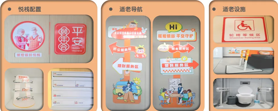 在服务环境适老化、无障碍化改造上,平安银行长春分行营业部进行了全方位升级。设计制作专属“暖橙银龄悦栈”,设置“暖橙银龄服务室”,配有骨传导助听器、轮椅专属等候区、便民扶手等多样化适老设施。老年客户到店后业务办理区域方便“找到”,叫号震动“提示到”,需要帮助“通知到”,并根据东北地区冬季寒冷、路滑等特征配备防冰防滑鞋套、可坐拐杖等季节限定助老设施,确保老人在网点厅堂及往返途中安全、便捷。