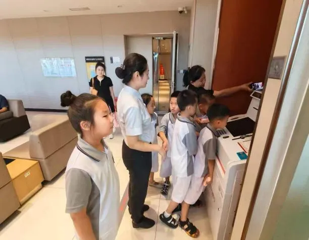 活动伊始,该行工作人员化身“职场向导”,带领孩子们参观银行各功能区域,详细讲解了柜员、客户经理、大堂经理等岗位的日常职责。“原来银行里有这么多不同的工作呀!”孩子们一边认真聆听,一边好奇地观察着工作人员的操作,对银行的运作模式有了初步认识,也对金融职业产生了懵懂的向往。