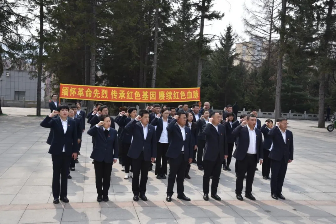 农行白山分行组织机关党员来到四保临江烈士陵园,在庄严肃穆的烈士纪念碑前整齐列队,举办了向纪念碑敬献花篮、集体默哀、向烈士墓献花等一系列祭奠活动并重温入党誓词。党员干部表示要将党史学习教育与实际工作紧密结合起来,把对革命先烈的追思转化为干事创业的巨大动力,将红色基因融入血脉,不断提高政治素质和业务能力,充分发挥党员干部先锋模范作用,以更加昂扬的斗志、更加务实的作风投入到工作中,为谱写金融服务社会高质量发展的新篇章贡献农行力量。