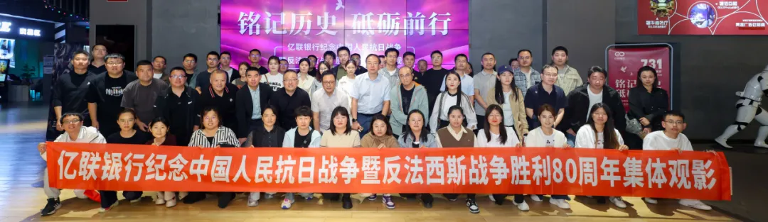 为铭记中国人民抗日战争暨世界反法西斯战争胜利80周年的伟大历史,缅怀为民族独立与解放事业英勇牺牲的革命先烈,弘扬以爱国主义为核心的民族精神,2025年9月18日,亿联银行党委与工会联合组织了以“铭记历史,砥砺前行”为主题的观影活动。