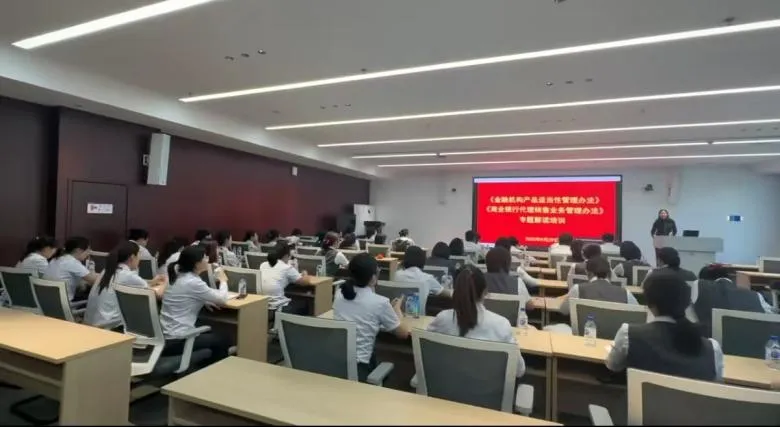 为了规范吉林农商银行代销业务有序发展,强化适当性管理,进一步提升依法合规经营水平,切实维护金融消费者合法权益,按照吉林省银行业协会的部署安排,吉林农商银行于9月29日通过现场与非现场形式,组织全系统个人金融、内控合规、消保条线人员及支行全体员工参加中国银行业协会《金融机构产品适当性管理办法》《商业银行代理销售业务管理办法》解读线上培训班。吉林农商银行在总行培训室组织城区学员现场参训,各市县设置分会场,近2万人在线学习。