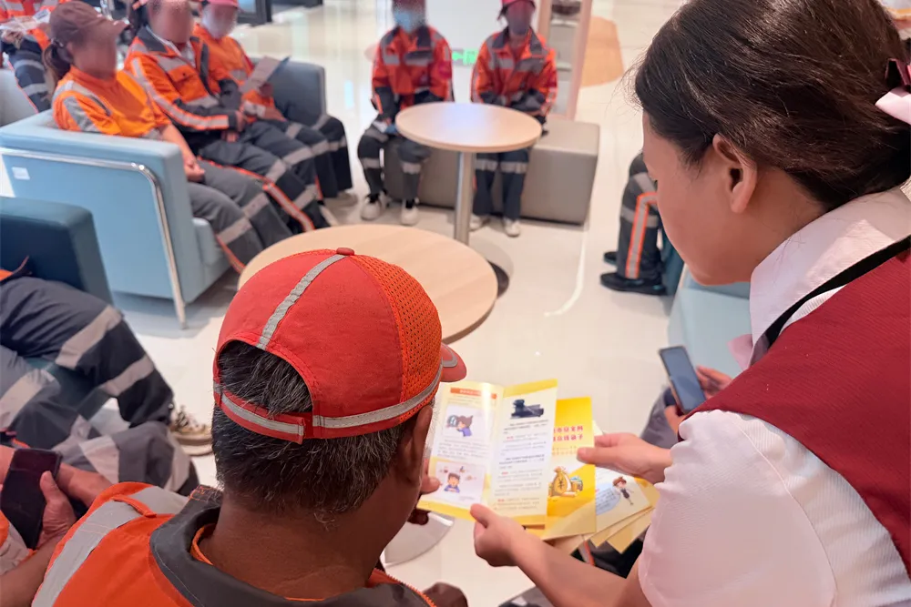 在表达敬意的同时,兴业银行长春分行更关注如何守护好环卫工人们的劳动成果。活动现场,银行工作人员专门开展了金融知识普及教育,聚焦环卫工人等群体常见的金融风险,进行了耐心讲解。“叔叔阿姨们,一定要记住,天上不会掉馅饼,许诺高额回报的投资要特别警惕……”工作人员用通俗易懂的语言,结合案例,向环卫工人们揭示了非法集资的常见手段和危害,特别提醒他们要警惕“高息诱饵”“亲情陷阱”等,提高识别和防范金融诈骗的能力,守好自己的“钱袋子”。