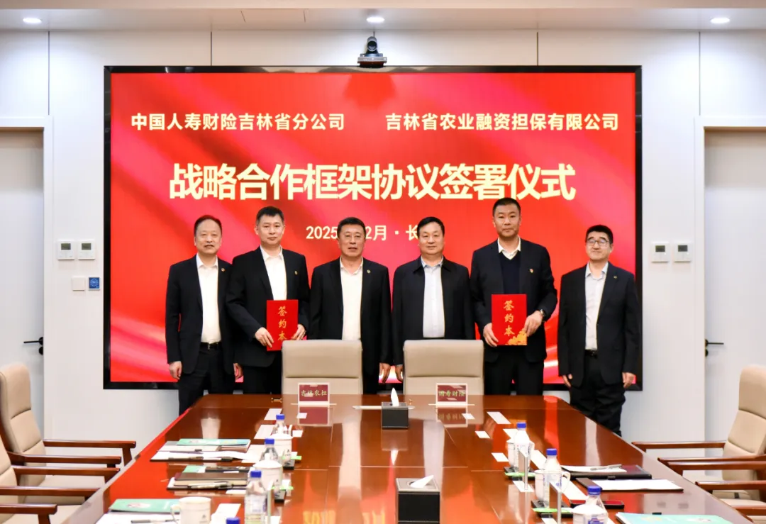 2025年12月25日,省农担公司与中国人寿财险吉林省分公司签署战略合作协议,共建“保险+担保”支农合作体系。