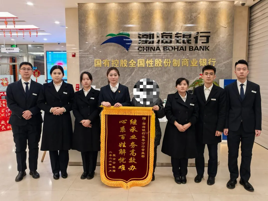 1月23日,程女士代表全家送来“继承业务高效办 心系百姓解忧难”锦旗,同时致电总行客服热线表达感谢。此次业务办结,是渤海银行长春分行践行“以客户为中心”理念的生动实践。未来,分行将继续坚守金融为民初心,强化专业服务能力,完善协同机制,聚焦金融服务痛点难点,为民生服务高质量发展贡献力量。