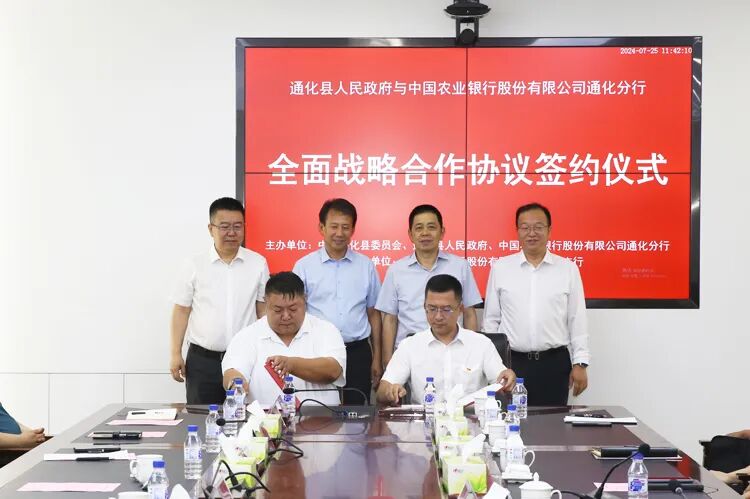 7月25日,通化县人民政府与中国农业银行通化分行签署全面战略合作协议。县委书记戴存鹤,县委副书记、县长丁德贵,县委常委、常务副县长韩奥,县政府副县长于潇出席签约仪式。