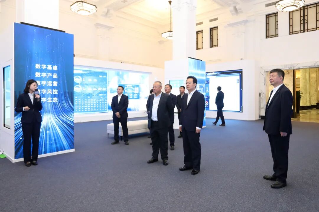 吉林市委书记胡斌(前右二)了解浦发银行数字化转型情况。
