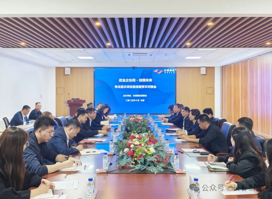 10月13日,为深化政企协同创新,推动光电领域龙头企业与资本高效对接,长春新区财政局联合光电办及域内外金融机构共同举办“政金企协同·创领未来—希龙显示项目路演暨资本对接会”,积极为长春希龙显示技术有限公司搭建技术与项目展示平台,打通“科技-产业-金融”融合通道,加快希龙显示在Micro-LED产业加速布局,带动光电产业高质量发展。