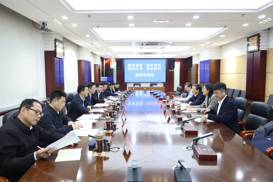 10月16日,梅河口市与吉林农村商业银行举行座谈交流会。梅河新区党工委书记、梅河口市委书记朱欢主持会议,梅河新区管委会主任、梅河口市市长刘铁铎,吉林农村商业银行股份有限公司董事长王立生,吉林农村商业银行股份有限公司行长马剑凤出席会议。