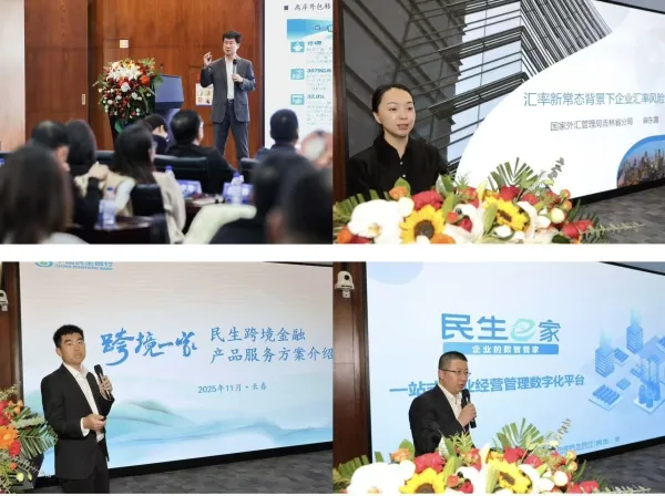 在外贸金融培训环节,会议内容务实而富有深度。中国民生银行首席经济学家温彬就全球经济格局的最新动态与未来趋势进行了权威解读,为企业把握市场脉搏提供了宏观视角。国家外汇管理局吉林省分局市场管理科麻东露则详细宣讲了当前汇率避险的核心政策,为企业稳健经营提供了权威指引。中国民生银行总行交易银行部仲俊杰和网络金融部战扬分别介绍了国际结算、民生e家产品和服务方案。