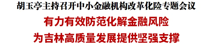 胡玉亭指出,近年来,全省上下认真贯彻党中央、国务院决策部署,大力推动中小金融机构改革化险工作,各级各方面同题共答、聚力实干,金融化险工作取得实质性进展、阶段性成效。8月28日,吉林省农村商业银行正式挂牌运营,标志着我省金融改革发展取得重大突破。各有关方面要牢固树立“发展是政绩、化债除险也是政绩”的理念,坚定信心决心,保持战略定力,用足用好各类政策资源,强化务实有效的针对性举措,以钉钉子精神推动改革化险走深走实,助力吉林全面振兴取得新突破。