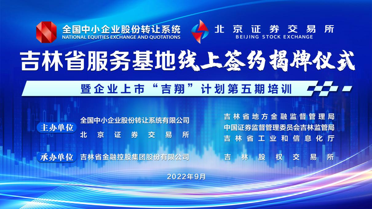 9月22日,全国中小企业股份转让系统有限责任公司、北京证券交易所吉林省服务基地线上揭牌和战略合作协议签约仪式暨吉林省企业上市“吉翔”计划第五期培训在长春成功举办。