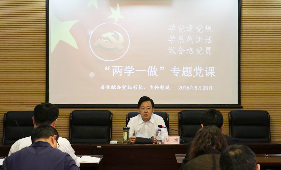 2016年5月20日,省金融办党组书记、主任胡斌同志就“两学一做”学习教育为全办同志讲专题党课。办党组成员、副主任唐庆会主持了党课。全办党员干部参加了会议。